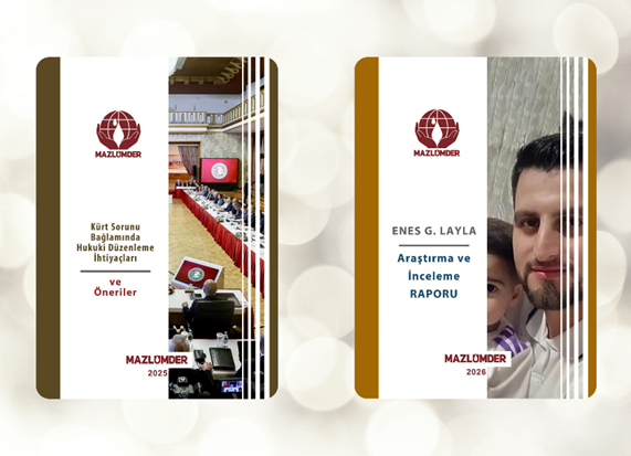 - Kuruluşundan itibaren Kürt meselesini Türkiye’nin en temel insan hakları sorunlarından biri olarak kabul eden MAZLUMDER, yaptığı pek çok çalışmayla meselenin hak eksenli çözümü için çaba göstermiştir. TBMM çatısı altında kurulan “Millî Dayanışma, Kardeşlik ve Demokrasi Komisyonu” ile somutlaşan yeni çözüm sürecinin hukuki zeminine katkı sunmak amacıyla “KÜRT SORUNU BAĞLAMINDA HUKUKİ DÜZENLEME İHTİYAÇLARI VE ÖNERİLER”3 başlıklı rapor 6 Ocak 2026 tarihinde kamuoyuna duyurulmuş ve komisyona sunulmuştur.90’lı yılların güvenlikçi paradigmasından sıyrılarak; insan onurunu, eşit vatandaşlığı ve adaleti merkeze alan bir hukuk reformu önerisini içeren raporumuzun Türkiye’nin toplumsal barışına bir nebze de olsa katkı sunmasını temenni ediyoruz.